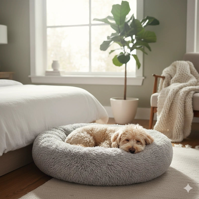 Imagine your pet finally relaxed, nestled deep in their own cloud of comfort. Our luxurious donut bed transforms anxiety into pure bliss, giving them the secure, warm hug they've been dreaming of. Happy pet, happy you.
