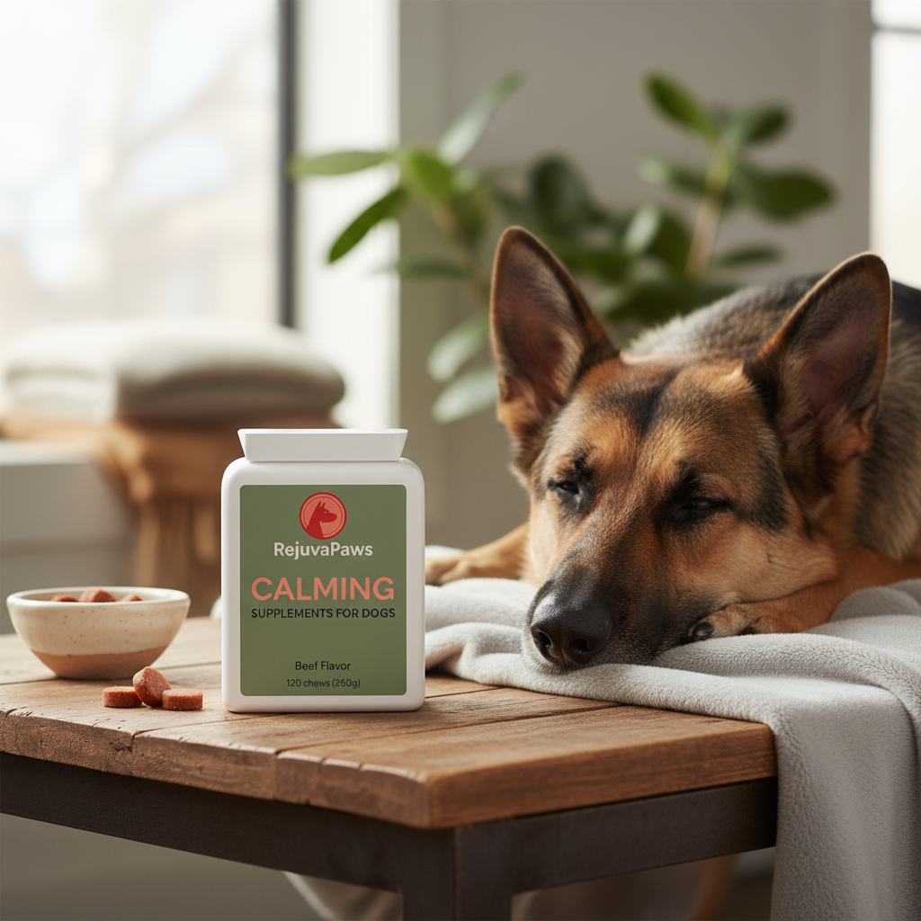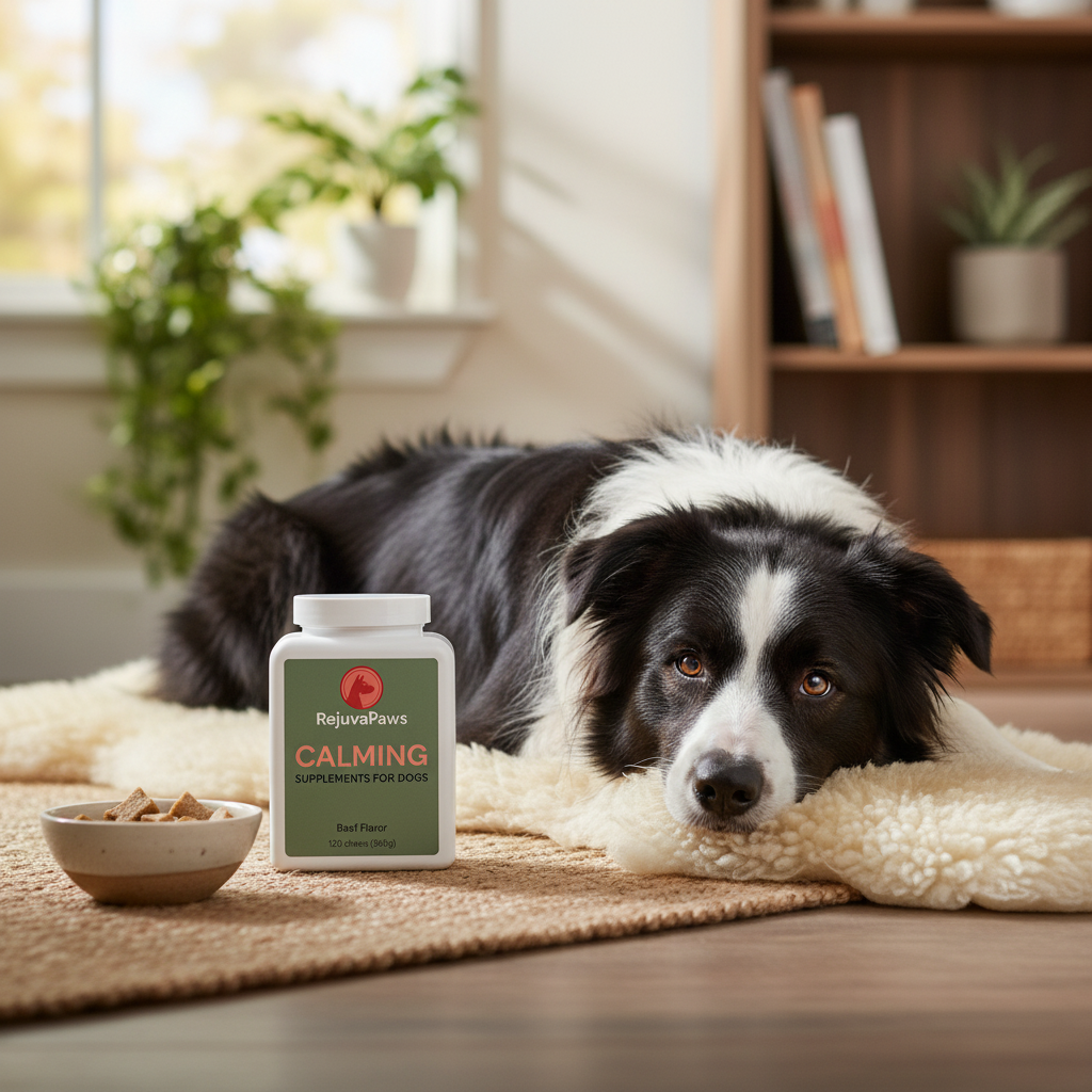 Stop the storm stress: calm your pup with RejuvaPaws Calming Supplements